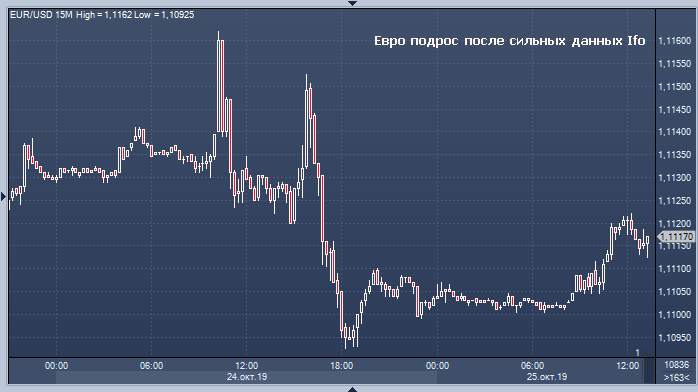 EUR/USD поднялся на 0.2% до максимума 1.1123. Немецкий индикатор ожиданий Ifo повысился до 91.5 в октябре, превзойдя среднюю оценку в 91.0 и предыдущее пересмотренное значение в 90.9, что поддерживало единую валюту. Киви падает, скандинавские валюты отступают; NZD/USD упал на 0.3% до минимума 0.6364; пара снизилась на 0.3% за неделю, настроившись на четыре недели потерь подряд. По словам азиатского валютного трейдера,макро-счета постоянно продавали валюту, вызывая у игроков с левереджем стопы ниже 0.6371, минимума 21 октября.