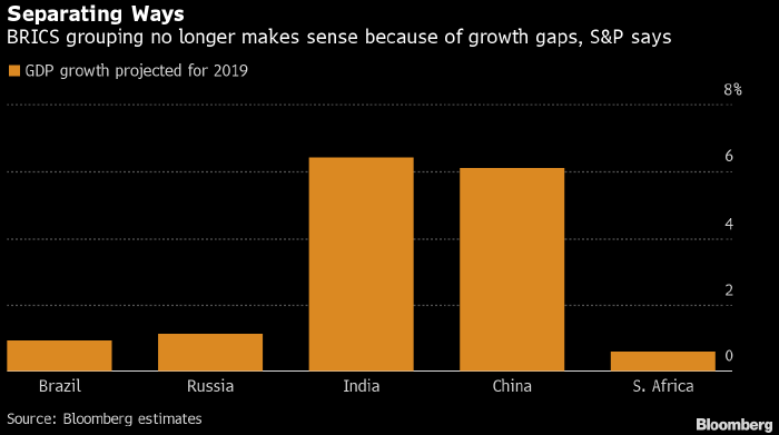 «Расхождение траекторий долгосрочного роста этих пяти стран снижает ценность их анализа в качестве единой группы», - написали в сегодняшнем отчете эксперты S&P Global Ratings.