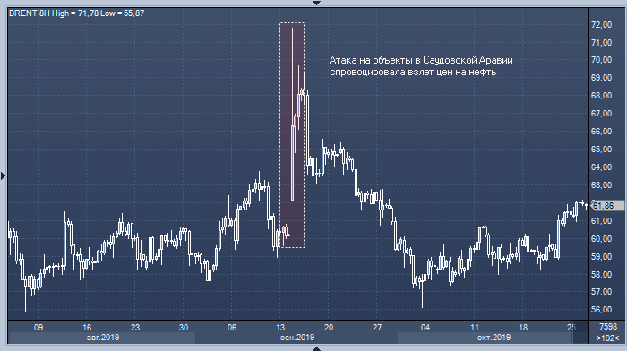 Напомним, что 14 сентября несколько НПЗ в Саудовской Аравии подверглись атаке дронов, после которой объем добычи нефти в стране краткосрочно сократился вдвое, а котировки Brent взлетели почти на 20%. Однако инфраструктура была довольно быстро восстановлена, и через полторы недели после атаки добыча вернулась на прежний уровень.