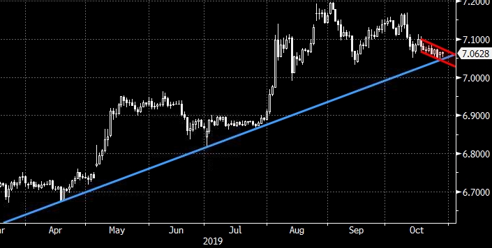 Однако пара USD/CNH может отскочить от линии тренда, если торговые переговоры снова провалятся. Мы наблюдали это уже ранее в мае и августе этого года. В этом сценарии о прорыве максимума этого года чуть ниже 7.20 не может быть и речи, исходя из предыдущих ценовых моделей и учитывая, что в четвертом квартале китайская экономика все еще сталкивается с новыми трудностями.
