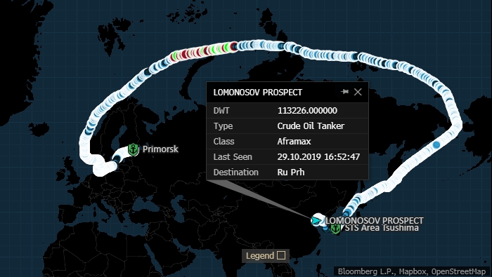 Танкер «Проспект Ломоносова» отплыл из Приморска после погрузки 27—28 сентября и пришвартовался в Лайчжоу (китайская провинция Шаньдун). Танкер «Проспект Менделеева» произвел загрузуку в порту Приморска 1—2 октября. Он двигался по тому же маршруту и прибудет в китайский Таньцзинь 1 ноября.