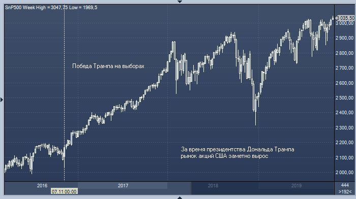 Если же выборы выиграет Дональд Трамп, то S&P 500 взлетит до 3600 пунктов, сообщил господин Джонс в понедельник, выступая на конференции в Нью-Йорке. По его мнению, победа Элизабет Уоррен, которая предлагает ввести налог на богатых, предоставить всеобщее бесплатное медицинское обслуживание и изменить законодательство на рынке акций, спровоцирует замедление темпов роста ВВП США до 1%.