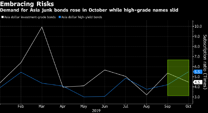 «В октябре спрос на азиатские высокодоходные облигации резко вырос благодаря удовлетворительной корпоративной отчетности, возобновлению покупки векселей ФедРезервом, а также прогрессом в торговой войне и Брекзите», - отмечает глава департамента анализа долгового рынка Mizuho Securities Asia Марк Рид.
