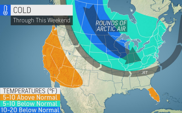 В первой половине ноября температура в Средне-Атлантических и Северо-восточных штатах США будет примерно на 6-7 градусов Цельсия ниже обычного, сообщил метеоролог AccuWeather Дэн Коттловски в интервью USA Today. Если он окажется прав, то уже в начале следующей неделе этот регион ожидают заморозки и «экстремальный холод».