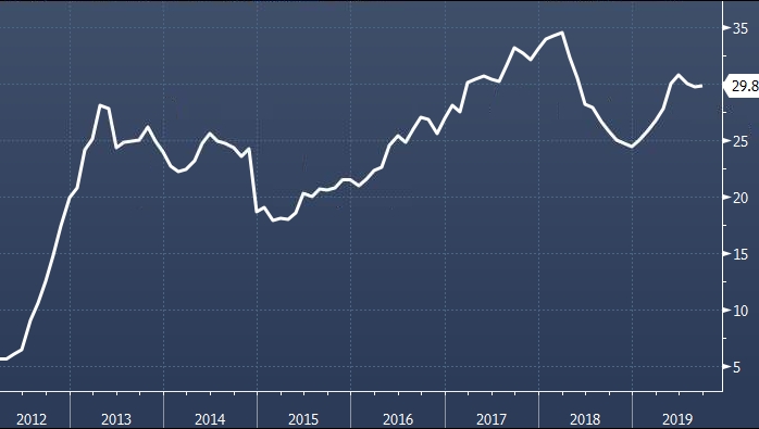 Доля вложений нерезидентов в ОФЗ на счетах иностранных депозитариев в НРД в общем объеме рынка ОФЗ в октябре 2019 года увеличилась на 2.4 процентного пункта, до 31.4%, что в объемах по номиналу соответствует росту на 233 млрд рублей, следует из «Обзора рисков финансовых рынков», подготовленного Банком России.