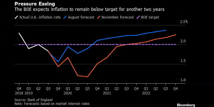 Банк Англии теперь ожидает рост в 2020 году на уровне 1.2% — что будет наихудшим с 2009 года — по сравнению с 1.3%, ожидаемыми ранее. Общий уровень производства будет на 1% ниже в конце прогнозного периода, чем ожидалось в августе.