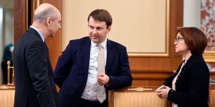 Фото: © Александр Миридонов / «Коммерсантъ» Антон Силуанов, Максим Орешкин и Эльвира Набиуллина (слева направо)
