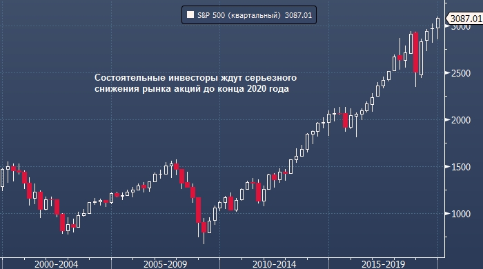 Из результатов опроса UBS следует, что 80% респондентов ждут роста волатильности, а 55% прогнозируют серьезное снижение рынка акций, которое произойдет до конца 2020 года. 60% респондентов подумывают о дальнейшем увеличении доли наличных в портфеле, а 62% планируют в целях диверсификации распылить капитал по различным классам активов.
