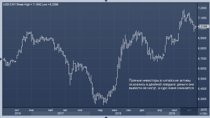 Причем, произошло это не метафорически, а вполне реально: после продажи китайских активов инвесторы не могут вывести деньги из-за контроля над движением капитала. Эта проблема широко распространена, а объемы застрявшего капитала настолько велики, что появились специальные люди, занимающиеся исключительно хеджированием валютных рисков.