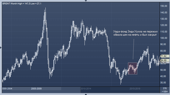 Однако его хедж-фонд Astenbeck не пережил обвала цен на нефть, который начался в 2014 году, и был ликвидирован тремя годами позднее. На протяжении всего рыночного коллапса Энди Холл оставался быком.