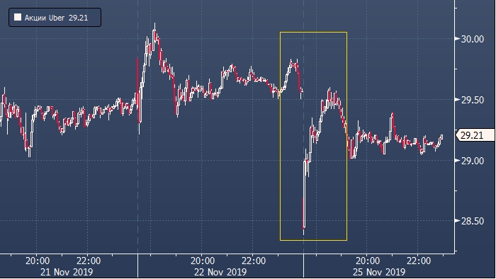 Акции Uber упали на 4%, но после восстановили чать потерь.