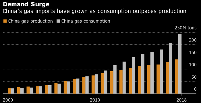 Спрос на газ вырос, так как Пекин заставил миллионы фабрик и домов перейти с угля на газ в целях уменьшения смога и сокращения выбросов углекислого газа.