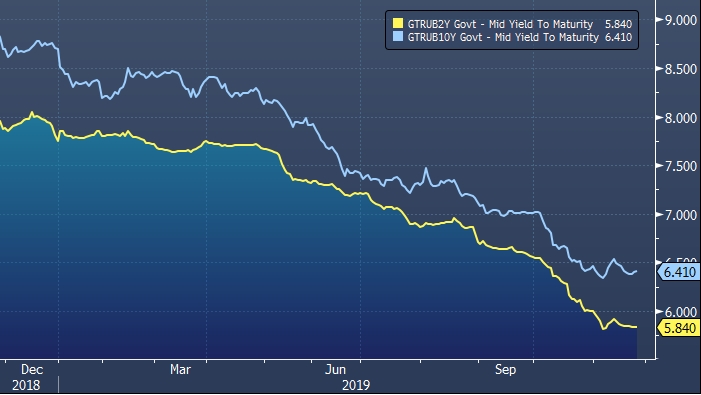 Аналитики банка Нордеа отмечают перегрев на рынке ОФЗ. По мнению экспертов, текущая доходность 2-летних рублевых облигаций на уровне 5.84% предполагает, что ключевая ставка Банка России в течение ближайших двух лет будет ниже 6%. Сейчас ключевая ставка Банка России находится на уровне 6.50% годовых. Рынок прогнозирует снижение показателя до 6.00%.