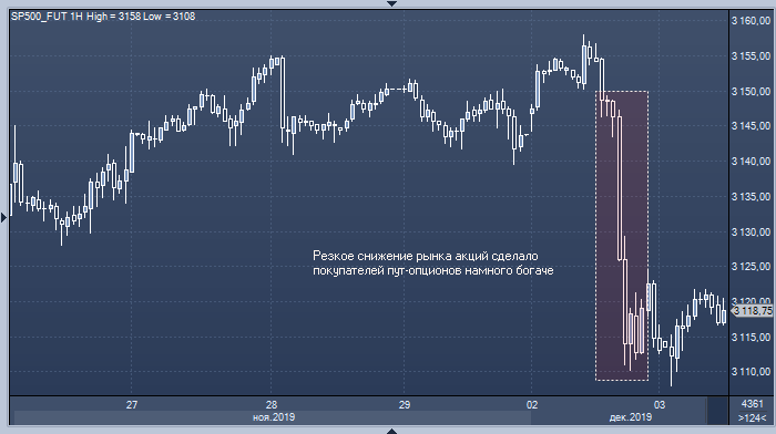 Индекс S&P 500 остается заметно выше страйка указанных опционов, однако вчерашнее снижение рынка уже сделало неизвестного трейдера богаче на $10 млн, так как премия его путов выросла на десятки процентов.