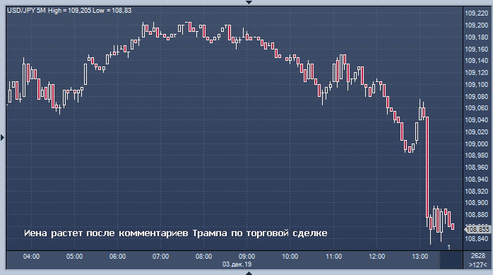 Доллар восстанавливает прежнюю динамику по отношению к иене после того, как президент США Дональд Трамп заявил журналистам в Лондоне, что сделка по вопросам торговли между США и Китаем, возможно, будет заключена ближе к президентским выборам в следующем году, что у него нет срока для торговой сделки с КНР.