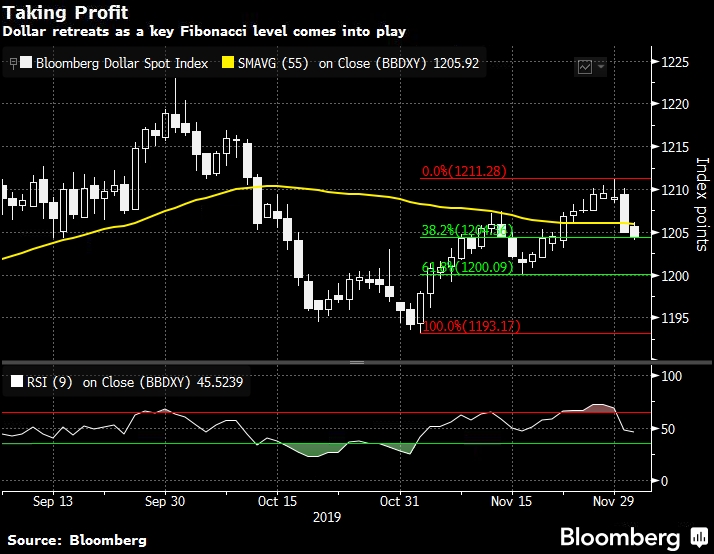 Индекс Bloomberg Dollar Spot колеблется между прибылью и убытком, стабилизировавшись возле уровня 1205.