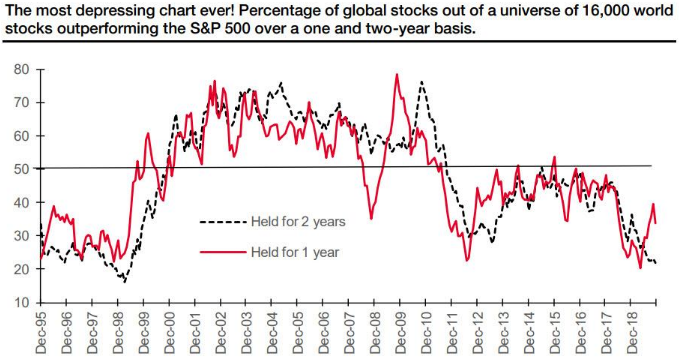 Societe Generale призывает активных инвесторов на рынке акций посмотреть на «наиболее мрачный график за всю историю» (см. выше), и задать себе вопрос о том, каковы их шансы заработать.