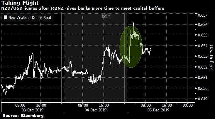 Новозеландский доллар поднялся до четырехмесячного максимума, поскольку инвесторы сократили ставки на снижение процентных ставок после того, как центральный банк дал местным кредиторам больше времени для удовлетворения требований к капиталу. Австралийский доллар упал после слабых данных по розничным продажам.