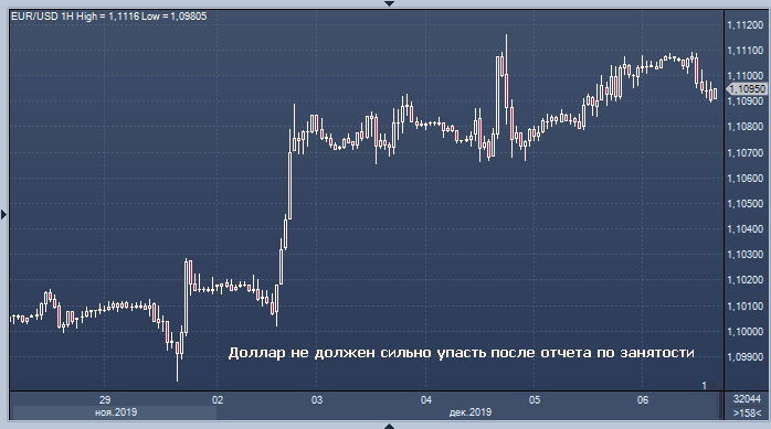 Медвежье давление на доллар США не должно быть сильным, если пятничный отчет по занятости в несельскохозяйственном секторе США, который выйдет в 13:30 по Гринвичу, будет соответствует ожиданиям, говорит MUFG. Ожидается, что данные по рабочим местам покажут, что в ноябре США добавили 187 000 новых рабочих мест по сравнению со 128 000 рабочих мест, добавленных в предыдущем месяце, согласно опросу экономистов WSJ. Уровень безработицы останется стабильным на уровне 3.6%. Однако любой признак замедления роста занятости и расхождения с ожиданиями рынка, скорее всего, приведет к некоторому падению доллара, особенно после того, как смешанные экономические данные США на этой неделе, включая данные по рабочим местам частном секторе, уже понизили курс доллара США. Индекс доллара DXY в настоящий момент находится на уровне 97.41, в то время как курс евро/доллар отступает до уровня 1.1090.