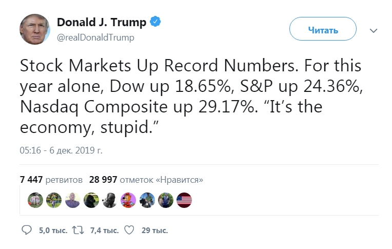 «Созданные в ноябре 266 000 рабочих мест, которые оказались намного сильнее, чем ожидалось, помогают укрепить надежды на ускорение глобального роста», — сказал Алек Янг, управляющий директор по исследованиям глобальных рынков в FTSE Russel. «Это также своевременная попытка укрепить доверие инвесторов, учитывая сохраняющуюся неопределенность вокруг торговли между США и Китаем».