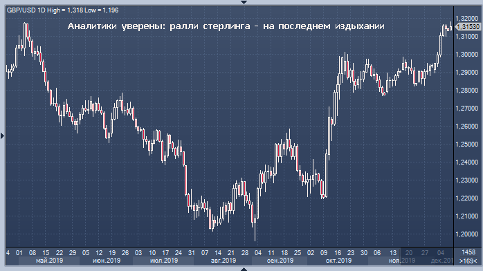 Фунт продолжает подниматься в преддверии всеобщих выборов в Великобритании 12 декабря. «Бычье движение котировок ясно показывает, что участники рынка все больше уверены в том, что тори могут получить большинство в четверг», — говорит MUFG. Однако, как только исчезнет первоначальная эйфория, фунту будет сложнее продолжить свой рост в 2020 году, отмечают в банке.Премьер-министру Борису Джонсону, вероятно, понадобится продление переходного периода Brexit, который истекает в конце следующего года, что откроет дверь рискам выхода Великобритании из ЕС без торгового соглашения.