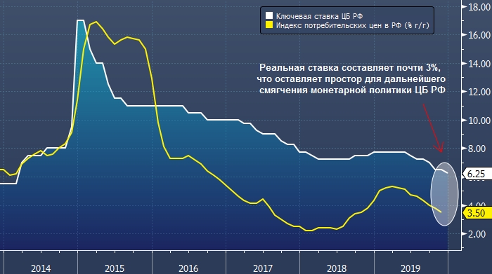 По итогам 2020 года инфляция в России замедлится до 2.5% (ProFinance.ru: а пятницу ЦБ РФ озвучил аналогичный прогноз на уровне 3.5%-4.0%), пишет экономист банка Клеменс Графе. Поэтому Банку России придется трижды снизить ключевую ставку, чтобы ее реальное значение осталось около верхней границы нейтрального диапазона, который составляет 2%-3%.