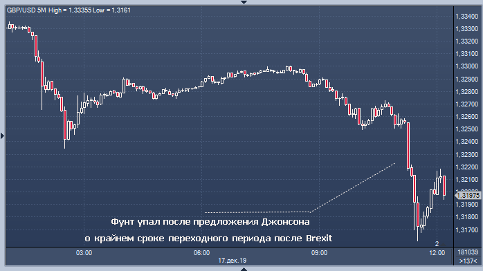 BBDXY повышается на 0.2%; он набрал в росте во время азиатской сессии после того, как премьер-министр Великобритании Борис Джонсон предложил принять законопроект о жестком крайнем сроке переходного периода, предназначенного для выработки и принятия торгового соглашения с ЕС, который начнется после Brexit. Последний становится формальностью после получения консерваторами большинства в парламенте. Он произойдет до 31 января 2020 года. Джонсон предлагает оформить законодательно невозможность продление переходного периода в Великобритании за пределы 2020 года. Фунт упал более чем на 1% на этой новости, что позволило индексу доллара набрать вес.