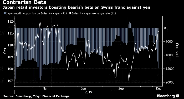 Иена является одним из самых любимых источников финансирования для сделок кэрри-трейда из-за отрицательных процентных ставок в Японии. Однако местные розничные инвесторы переворачивают эту стратегию с ног на голову. Стратегия, которая становится все более популярной среди таких японских инвесторов, заключается в том, чтобы брать кредиты в валюте с еще более низкими затратами — швейцарском франке — и вложить деньги в активы у себя дома. Они также делают ставку на коррекцию после того, как франк поднялся до восьмимесячного максимума против иены на прошлой неделе.
