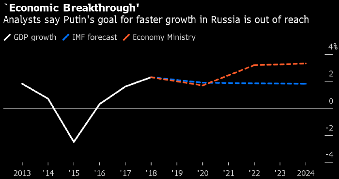 «Это будет очень непросто», - отмечает экономист «Ренессанс Капитал» Софья Донец, которая сделала один из наиболее оптимистичных прогнозов на 2020 год. - «Население страны стареет, поэтому стимулирование роста экономики потребует ее огромной реструктуризации».