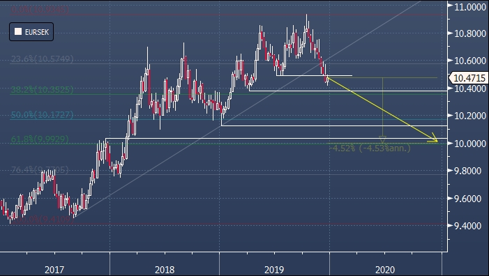 Goldman Sachs рекомендует продавать евро против шведской кроны с целью 10.30. При этом валютная пара EURSEK должна снизиться до 10 крон за единицу европейской валюты через год на фоне улучшения мирового экономического роста.