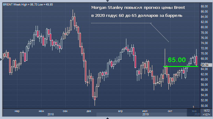 Так, аналитики Morgan Stanley решили поднять прогноз цены на нефть марки Brent на 2020 год с $60 до $65 за баррель, объяснив перемену во взглядах усилением геополитических рисков на Ближнем Востоке, где США и Иран обменялись военными ударами.