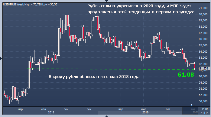 «По оценке Минэкономразвития России, сохранение текущего уровня ставок по банковским кредитным продуктам и реализация текущих бюджетных параметров предопределят сохранение низкого уровня совокупного спроса, продолжение тренда на укрепление рубля и устойчивое закрепление инфляции ниже 3% в первом полугодии 2020 года», — отмечается в анализе.