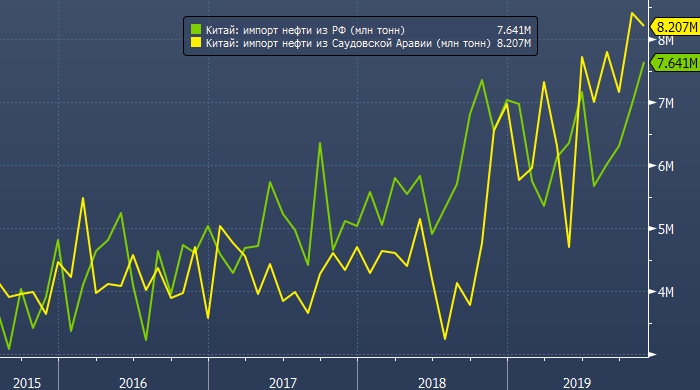 Напомним, что в ноябре Китай импортировал рекордный объем нефти из России, который вырос до 7.64 млн тонн с октябрьских 6.97 млн тонн (см. график в начале статьи). Саудовская Аравия в ноябре поставила в Поднебесную чуть меньше нефти, чем в октябре, когда объем ее экспорта также достиг рекордных значений.