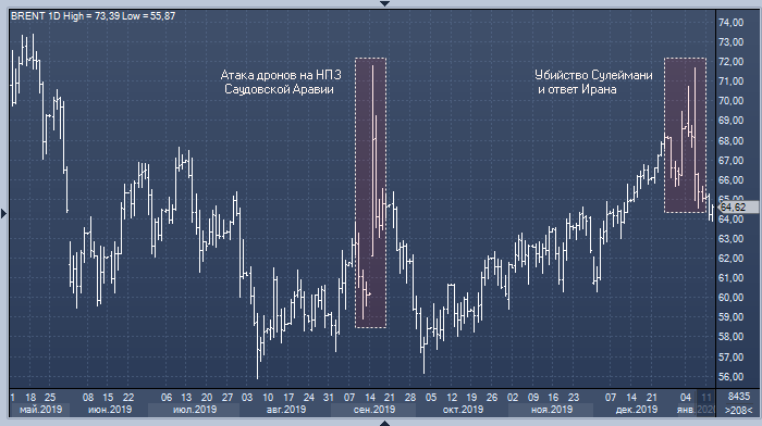 Похожая ситуация наблюдалась в середине сентября, когда дроны неопознанного происхождения нанесли удар по НПЗ Саудовской Аравии, в результате чего добыча в стране краткосрочно сократилась вдвое. Тогда двадцатипроцентный взлет цен на нефть был полностью отыгран всего за две недели.
