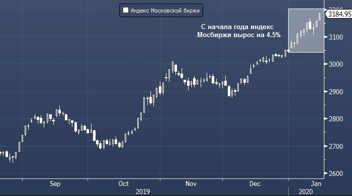 В 2019 году динамика рынка акций РФ стала одной из лучших в мире: рублевый индекс Мосбиржи вырос на 29%, а долларовый индекс РТС — на 45%, что стало следствием снижения курса доллара к рублю.