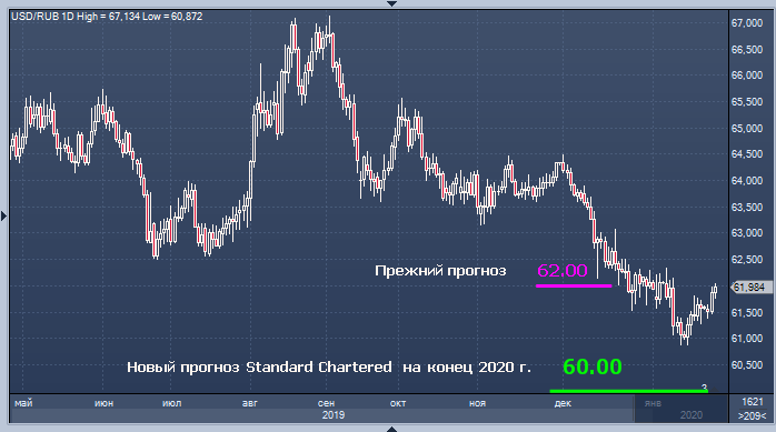 Примечание: Standard Chartered занял первое место в рейтинге прогнозистов Bloomberg по USD/RUB в 4 квартале 2019 года.