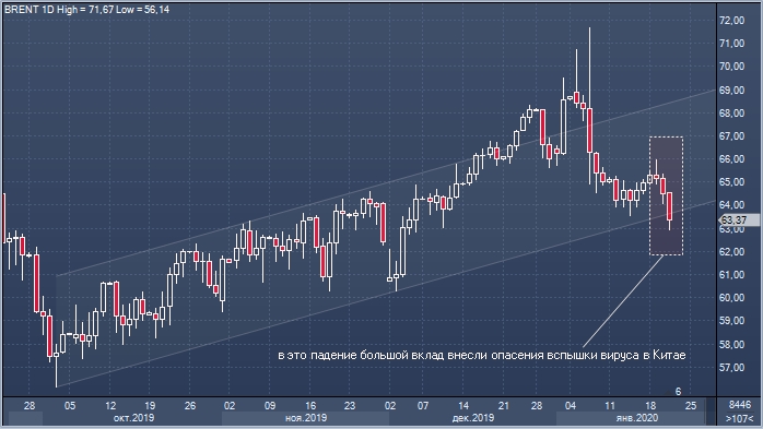 Беспокойства в отношении разрастания эпидемии могут превысить по силе влияния на рынок нефти риск сбоя поставок из Ирака, Ирана и Ливии, что приведет к снижению цен в ближайшие недели. Если аппроксимировать эпидемию атипичной пневмонии 2003 года на текущую ситуацию, негативный шок приведет к снижению спроса на 260 тыс. баррелей в день, включая сокращение спроса на реактивное топливо на 170 тыс. б/д.