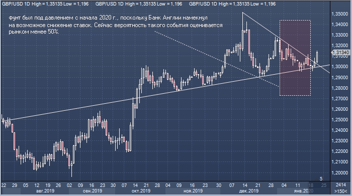 В фокусе участников рынка экономическая статистика, которая будет опубликована в ближайшую пятницу. Согласно ожиданиям, индекс деловой активности PMI в. обрабатывающей промышленности должен вырасти в январе до 48.8 пункта по сравнению с 47.5 п. в декабре. Однако значение показателя меньше 50 пунктов все еще будет говорить о замедлении деловой активности. PMI упал ниже пороговой отметки в апреле 2019 г. и с тех пор не превышал 50 пунктов. Позитивный сюрприз со стороны деловой активности способен значительно ускорить темпы роста фунта стерлингов.
