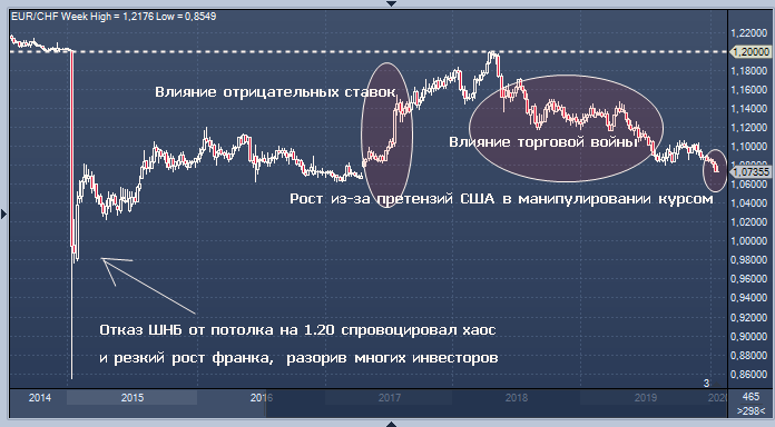 Отрицательные процентные ставки плюс обещание использовать интервенции на валютном рынке являются текущими инструментами ШНБ в его продолжительной борьбе со слишком сильной национальной валютой. Депозитная ставка находится на рекордно низком уровне -0.75%. Швейцарские официальные лица утверждают, что необходимо поддерживать спреды с активами еврозоны и удерживать курс франка от повышения.