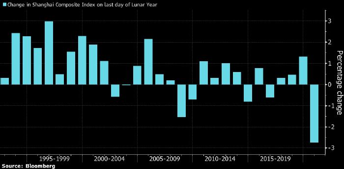 Эпидемия коронавируса побудила многих инвесторов закрыть позиции, и вчера ключевой индикатор китайского рынка акций Shanghai Composite рухнул почти на 3%, что стало рекордным значением для последнего дня лунного года за последние 30 лет (см. график в начале статьи — прим. ProFinance.ru).