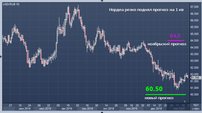 на конец года – до 62.5 рубля за доллар с 64 рубля за доллар.