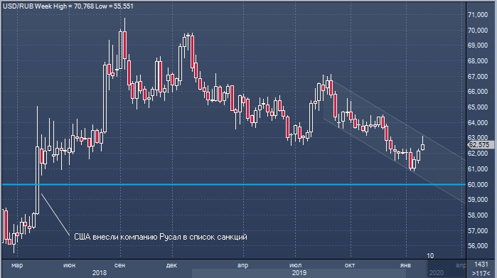 Последний раз на рынке за доллар давали 60 рублей в апреле 2018 года. Курс пробил этот уровень снизу вверх после того, как США ввели санкции против Русала.