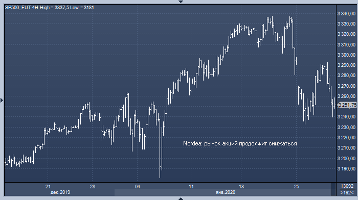 В ближайшей перспективе рынок акций, вероятно, продолжит снижаться, а длинные облигации покажут хорошую динамику, прогнозируют эксперты Nordea Bank, ссылаясь на данные по динамике рынков во время эпидемий атипичной пневмонии и свиного гриппа. Валюты-убежища могут показать умеренный рост, а лучшим сырьевым товаром станет золото.
