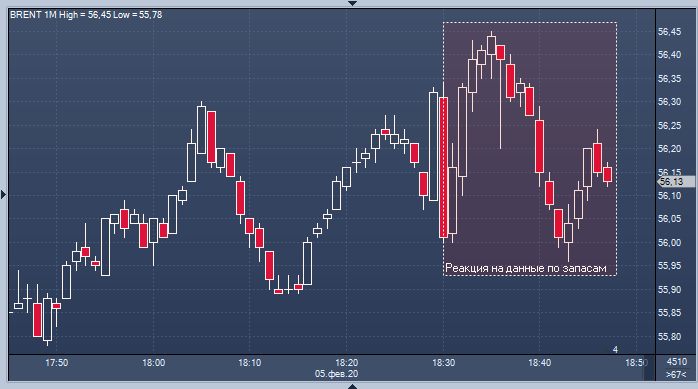 Реакция цен на нефть на данные была нейтральной. За пределами это реакции — цены на нефть немного понизились, но это уже под влиянием базового индикатора риска, а именно — американского фондового рынка. Последний шатает в разные стороны под влиянием потока информации о коронавирусе. Также для нефти важны решения ОПЕК+ по поводу дополнительного сокращения добычи и внеочередной встречи. Так что запасы сегодня — не главное.