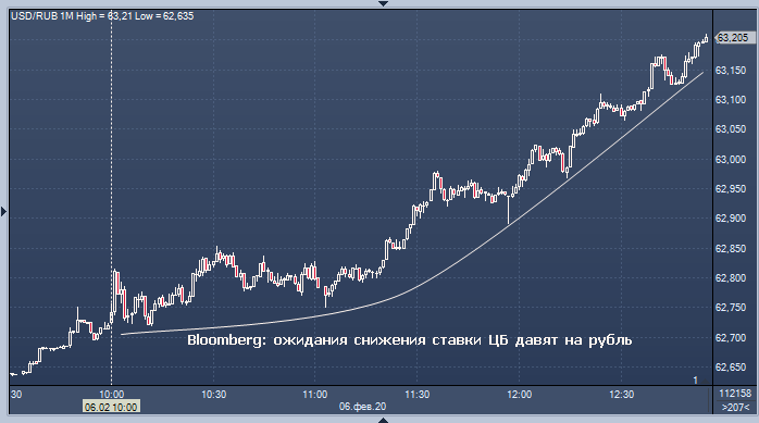 Российский рубль приостановил трехдневное ралли, вызванное глобальным восстановлением фондовых и сырьевых рынков, поскольку трейдеры обратили свое внимание на решение Банка России по ставке в пятницу. Рубль снижается на 0.5% до 63.18 / USD после повышения на 1.6% в предыдущие 3 дня. На этой неделе валюта росла, поскольку инвесторы увидели, что мировая экономика выдерживает воздействие эпидемии коронавируса. Рубль по-прежнему слабее на 1.8% относительно уровней, когда Китай начал вводить карантин 23 января.