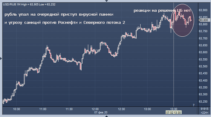 Совет директоров Банка России 7 февраля 2020 года принял решение снизить ключевую ставку на 25 б.п., до 6.00% годовых. Аргументы — замедление инфляции происходит быстрее, чем ожидалось, а инфляционные ожидания остаются стабильными. Хотя темпы роста российской экономики увеличились во втором полугодии 2019 года, есть риски существенного замедления мировой экономики. В ближайшее время дезинфляционные риски превалируют над проинфляционными. Банк России допустил возможность дальнейшего снижения ключевой ставки на ближайших заседаниях.