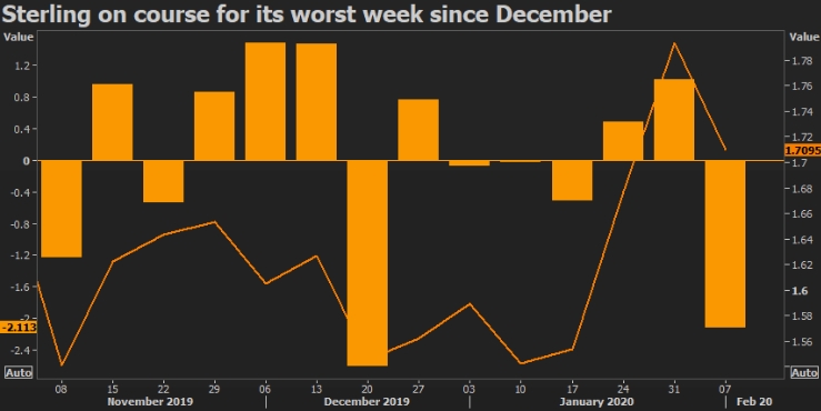 Фунт переживает наиболее худшую неделю после британских выборов, поскольку инвесторы оценили риск того, что Британия не сможет договориться о торговой сделке с Европейским союзом за 11 месяцев, оставшихся до окончания переходного периода после Brexit.