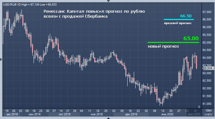 Это мнение главного экономиста Ренессанс Капитала Софьи Донец. Она пересмотрела свой недавний прогноз в сторону увеличения. Прежний прогноз составлял 66.5/$. Совокупный эффект на курс рубля может составить 8% к базовому сценарию компании, который предполагает ослабление рубля на 2-3% в год.