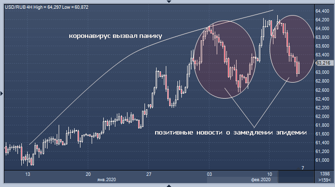 Курс рубля сегодня продолжает рост в ответ на восстановление рисковых активов во всем мире, включая нефть, на информации о спаде темпов распространения вируса в Китае и возвращении к работе китайских компаний. По мнению Елены Кожуховой из компании Велес Капитал, которое приводит Reuters, рубль преодолел ряд важных технических уровней, и теперь с учетом теханализа у него открылся путь к отметкам 62.65 за доллар и 68.20 за евро. Поддержкой рублю могут выступать сегодняшние аукционы по размещению ОФЗ в случае высокого иностранного спроса на бумаги, весьма вероятного в текущих условиях глобального интереса к рискованным высокодоходным активам