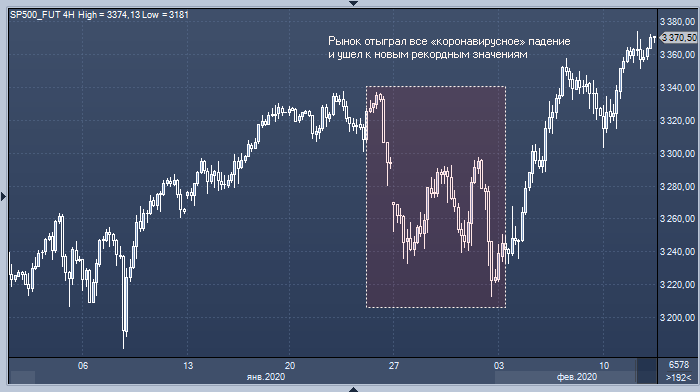 В первую неделю августа 2019 года рынок акций США рухнул на 8%, после чего резко развернулся вверх (см. график ниже). Тогда эксперты Goldman Sachs писали о том, что обвал рынка остановили именно корпорации, которые воспользовались низкими ценами и бросились скупать подешевевшие бумаги.